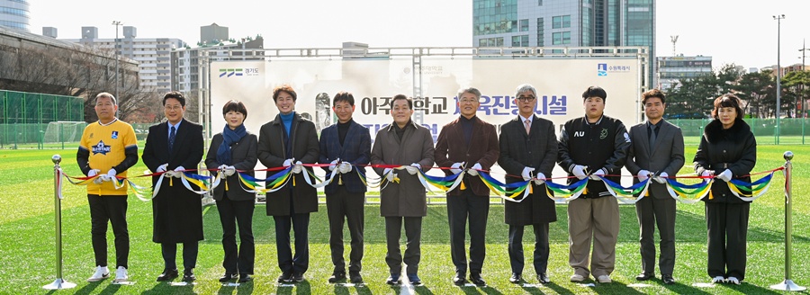 아주대학교는 경기도와 수원시의 지원으로 시행된 운동장 인조잔디 교체 사업을 완료하고 이를 기념하는 행사를 2일 오전 가졌다.
